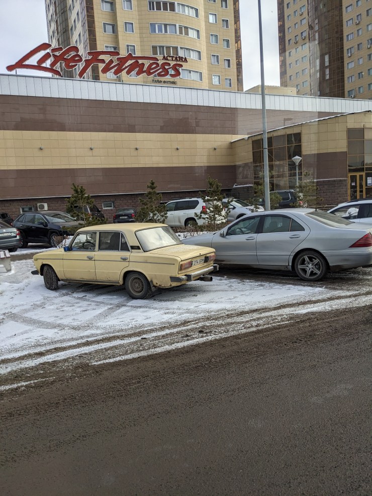 Earlier in the trip, M had joked that it was a local conspiracy theory that traffic was intentionally stymied to offer the illusion that Kazakhstan was growing – that traffic indicated prosperity. In both Astana and Almaty, I could not escape the sheer amazement at the chaotic traffic, the rigid acceptance and acquiescence to pedestrians (even at uncontrolled intersections/crosswalks), and what appeared to be a local suspension of Newtonian physics as cars cornered in complete disregard for icy roads. Of course, I later learned that the tires of cars are studded with metal nubs, which makes a visit during the transitionary period between fall and winter a point of curiosity to see if, in fact, the chaos increases. There is nothing quite like just watching as cars negotiate 2-point U-turns in the face of oncoming traffic, however… in a culture where car seats for kids appear to be a point of overthinking and every 3rd car out of 10 had the driver executing some of the best multitasking I have ever seen (yes, I did spend about 40 minutes counting… in 0℉ windy snow flurries… counting cars).