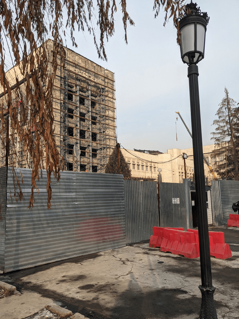 I walked Satpaev Street and mulled over the Independence Monument my final day in Kazakhstan; my time there was entirely too short to find the answers to questions I never knew I had. Before me, the reconstruction continued on the City Hall – burned in the protests… the ancillary buildings closest to the street still pockmarked by bullet holes.